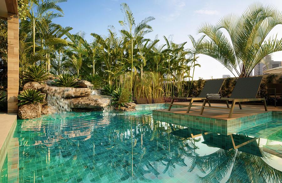 - Terminações 3, 4, 7 e 8: apartamentos de 117 a 135m² com 2 suítes ou 3 quartos, varanda gourmet, sala de estar/jantar, cozinha, área de serviço, banheiro de serviço e laje técnica.