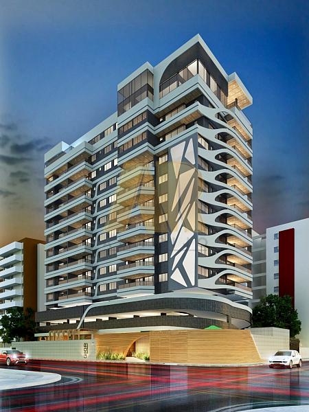 O apartamento de 106m² possui 2 suítes, sala e varanda integrada, cozinha e área de serviço com WC, 2 vagas de garagem.