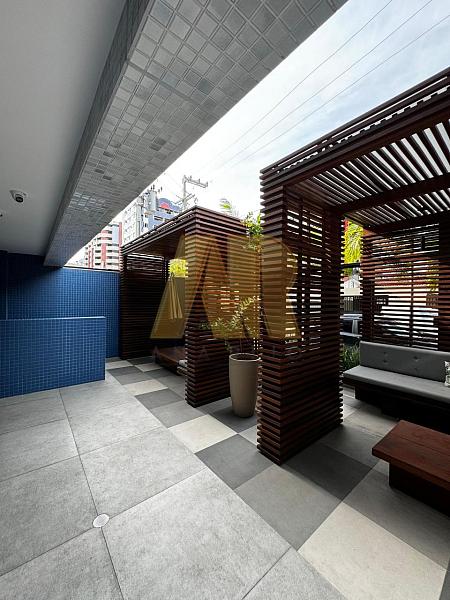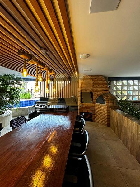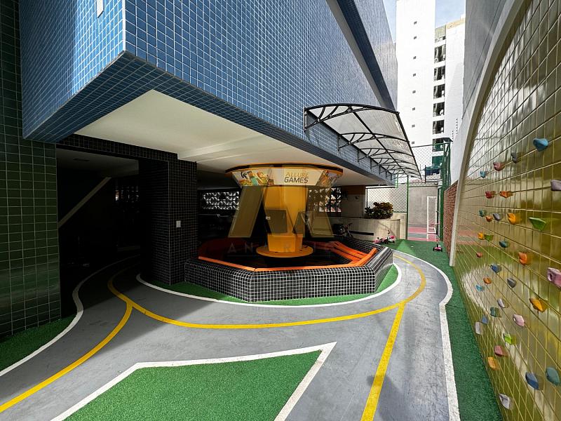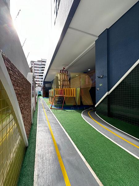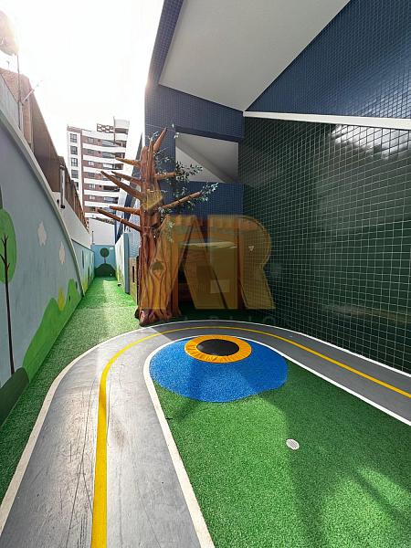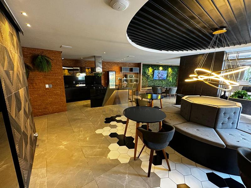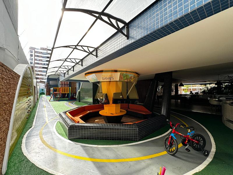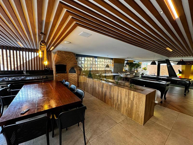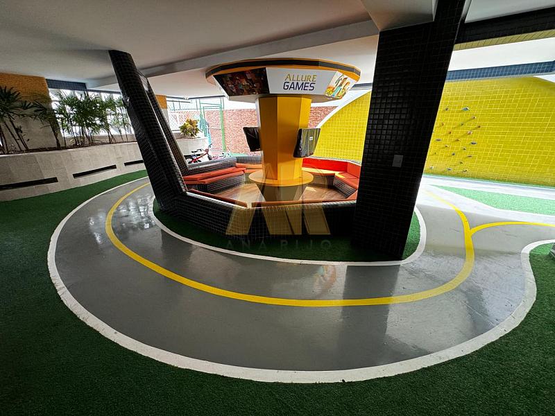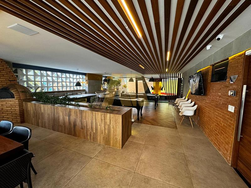 A área de lazer oferece diversas opções, incluindo piscina com deck, salão de festas gourmet, espaço grill, fitness, sala de jogos, game center, playground, quadra, lounge dos encontros, bicicletário, sala de estudos, sala da segurança e lava a jato.