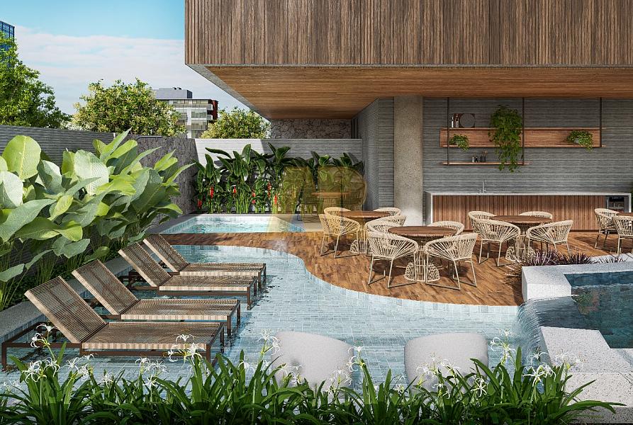 • Os apartamentos foram pensados para proporcionar amplitude, ventilação natural, integração de ambientes e acabamentos de altíssimo padrão. A arquitetura moderna se integra à paisagem local, com destaque para a praça de boas-vindas com espelhos d’água, áreas verdes e ambientes de lazer distribuídos em diversos pavimentos.
