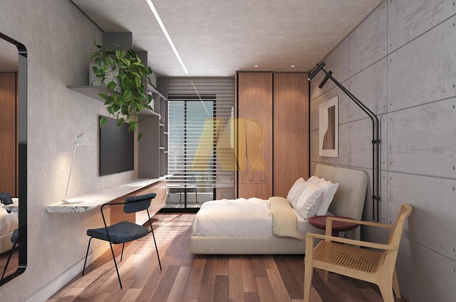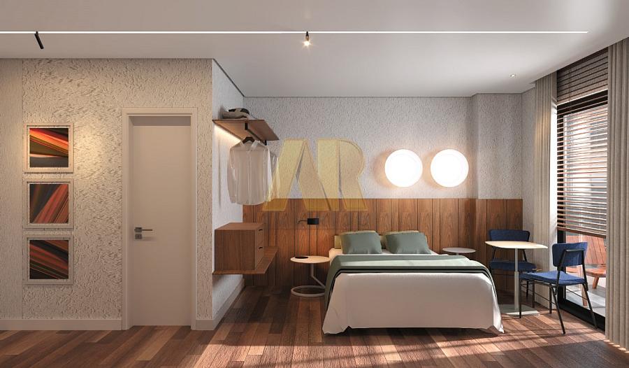 - Apartamentos tipo studio de 24 a 27m², todos com varanda