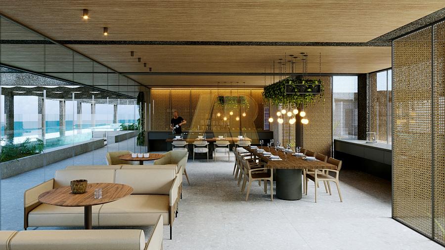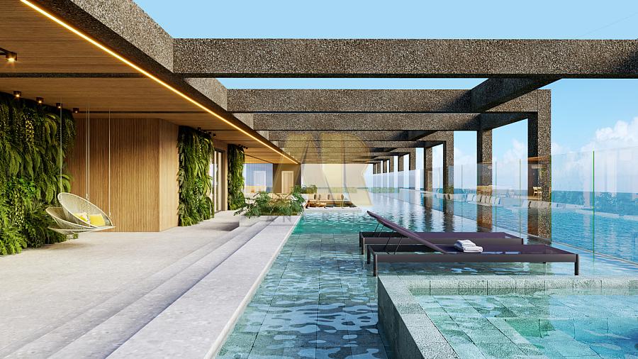 Além disso, o SUMMIT oferece uma gama de serviços e lazer, incluindo academia, área de lazer na cobertura (Rooftop), piscina de 48m² com sensação de borda infinita e vista para o mar, espaço gourmet, SPA, sauna e hidromassagem.
